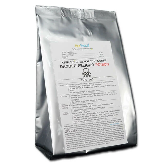- Api-Bioxal can only be made from approved sources that meet quality standards set by the EPA. Other oxalic acid powders are sold as “wood bleach” and sourced from whatever industrial manufacturer is handy.
