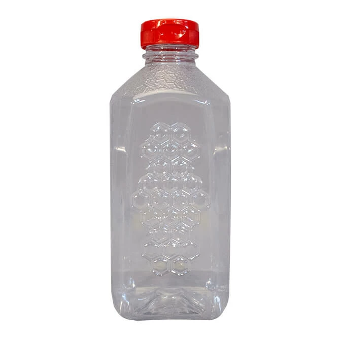The eye-catching hexagonal design of this 3 pound embossed honey jar will attract customers at the Farmers’ Market! This big jar features double indented handles for easy pouring and handling of your honey. A small oval label looks great across the bottle face, and is available with your choice of Hi-Flow Spouts, Flip top Lids, Dripless Lids or plain white caps. Cap colors cannot be mixed.