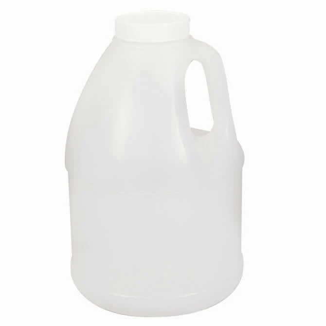 This 5 pound honey jug fills easily, pours well, and is easier to carry than a glass jar. The smaller 48mm cap controls the flow. The translucent HDPE lets some light pass through.