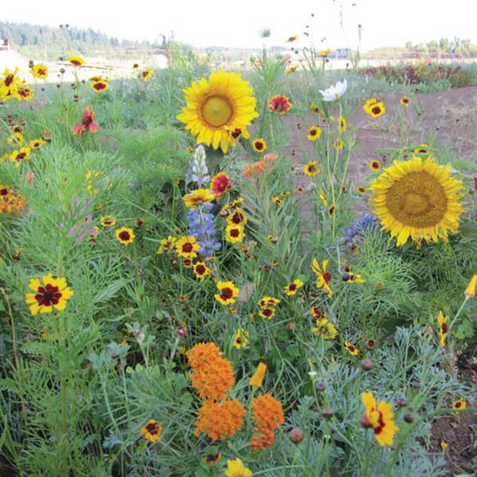 This mixture of annual and perennial wildflowers will provide food to many different pollinator species throughout the growing season. Easy to propagate and low maintenance, the diverse flower species is the perfect mix for a charming country garden. All but one of the species in the mix is native to the lower 48 U.S. states. The non-native exception is crimson clover, a nitrogen fixing plant that produces ample nectar for pollinators, and can already be found across the U.S. as it has become completely naturalized.