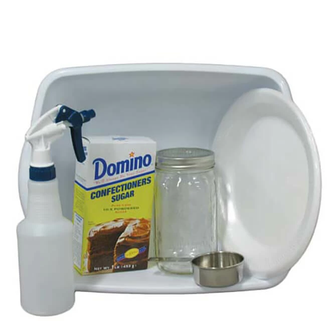 - Spray sugar and mites with water to dissolve sugar and make the mites easier to see