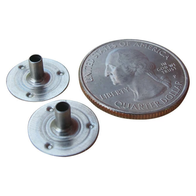 15 mm wide by 6 mm tall. To use, place a wick in the center hole of the wick sustainer base and squeeze shut to secure the wick. Then place in container for pouring. Pack of 100.
