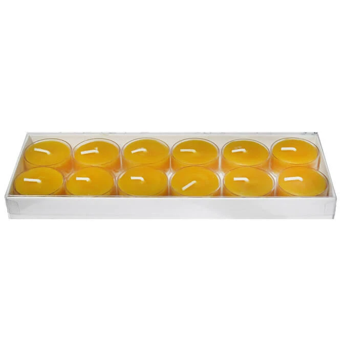 Betterbee is pleased to offer these 100% pure beeswax candles handmade in Greenwich, NY. This 12-pack of lovely yellow tealight candles have the soft, warm, environmentally-friendly burn beeswax candles are known for. Our beeswax candles are naturally honey scented and the scent will vary slightly based on honey, pollen, and propolis present in the beeswax.
